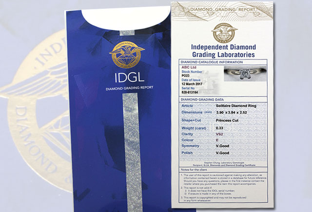 IDGL Chief Gemologist Mr. S. Chung F.G.A. Recipient, G.I.A. Diamonds and Diamond Grading Certificate.